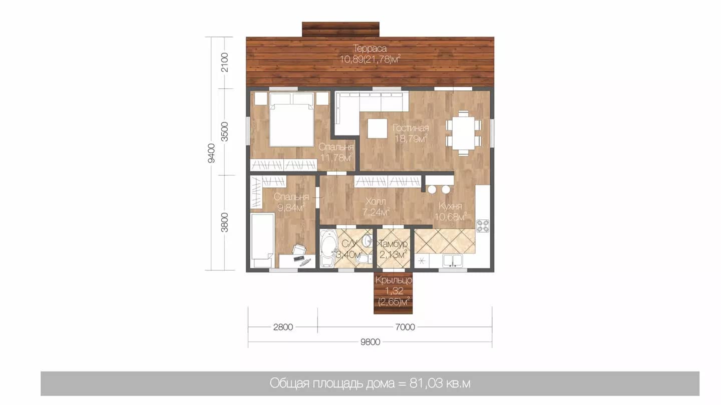 - 2 спальни